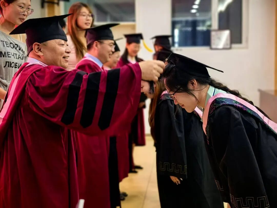 学位授予仪式在悠扬的校歌声中拉开帷幕,与会教师代表为毕业生拨穗并颁发学位证书,勉励学子们秉持“敬业 博学 求实 创新”的校训和“育经世致用人才,作富国裕民文章”的院训,不断求索、不断精进,以所学所悟服务社会,在未来道路上坚守理想、勇于担当,以实际行动为建设社会主义现代化强国、实现中华民族伟大复兴中国梦贡献青春力量!
