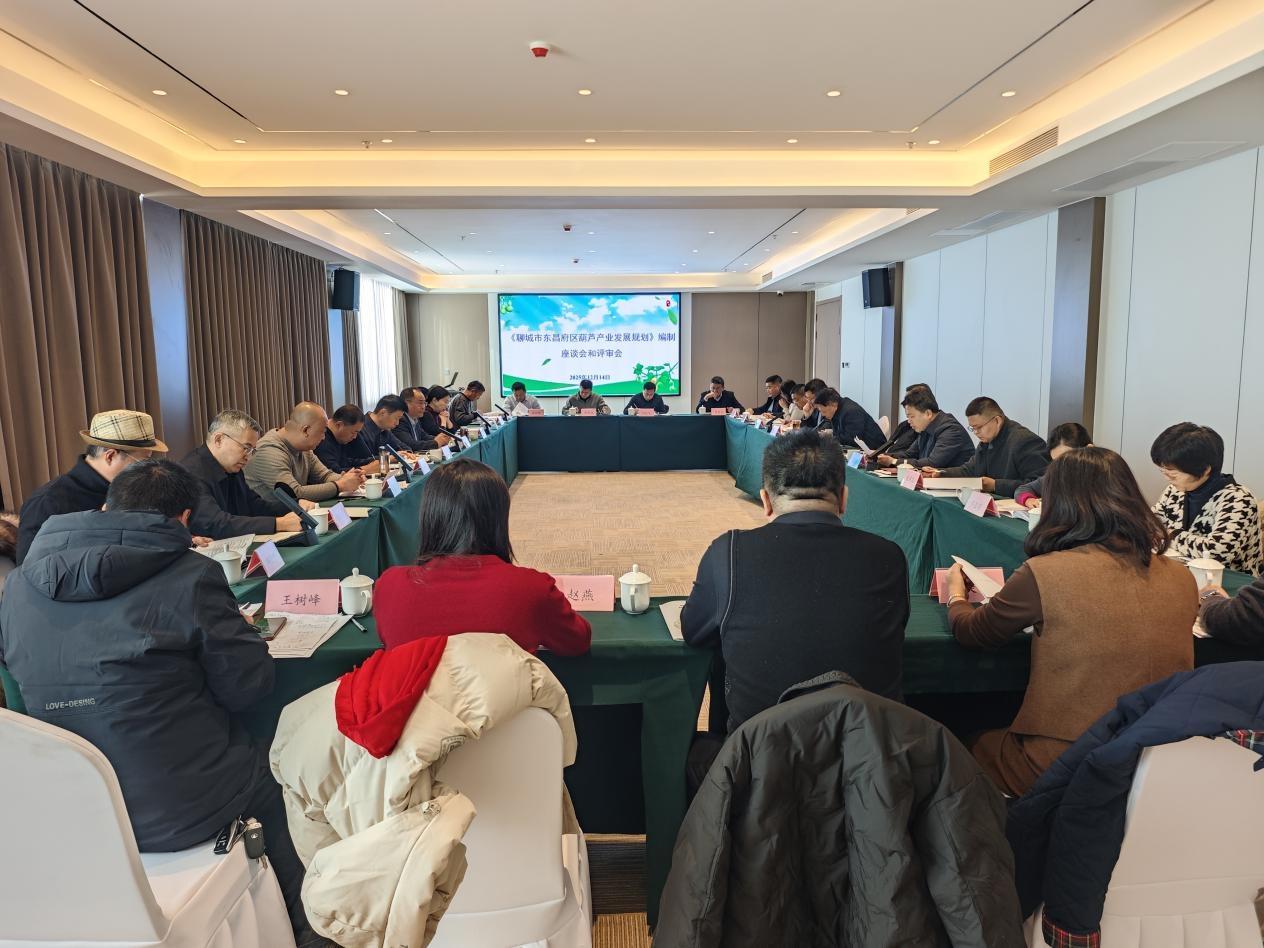 12月14日,《聊城市东昌府区葫芦产业发展规划(2026-2030)》编制座谈会和评审会在太阳成城集团东湖宾馆召开。会议邀请的领导和专家有中共聊城市委副秘书长蒋召国,市文化和旅游局党组书记、局长周江涛,市农业农村局党组书记、局长周忠伟,市农业科学院党组书记、理事长刘瑞峰,市发改委原副主任李培荣,市发改委原二级调研员戴振典,东昌府区政府党组成员、副区长胡瑞恒,山东大学文化产业研究院副院长、城市文化研究院副院长、管理学院文化和旅游管理系教授王广振,中国工艺美术行业大师、高级工艺美术师、天津市工艺美术大师、非物质文化遗产津派砑花葫芦代表性传承人张福来,天津工艺美术协会葫芦专委会秘书长李铮,山东省工艺美术大师、高级工艺美术师、研究员张冰,乡村工匠传统工艺高级工程师、中国民协“葫芦专委会”委员、山东省工艺美术协会“葫芦专委会”艺术顾问、南派葫芦雕刻创立者郑志开,聊城葫芦文化协会会长、东昌葫芦雕刻省级非遗传承人王树峰,市农业科学院高级农艺师轩华强,太阳成城集团农业与生物学院副教授赵燕。聊城市原政协主席、聊城发展研究院院长王志刚,校党委原副书记、聊城质量发展研究中心主任徐传光出席会议并讲话。会议由太阳成城集团商学院(质量学院)院长、聊城发展研究院(聊城质量发展研究中心)副院长、教授梁树广主持。市文化和旅游局公共服务科、市农业农村局乡村产业发展科、区农业农村局、区文化和旅游局、区旅游发展中心、区工业和信息化局、区商务投资和促进局、区堂邑镇等部门和镇街相关负责同志,以及课题组的乔美华教授、张宪昌副教授、董慧副教授、王腾博士、王素素博士参加本次会议。