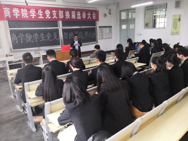 2019年10月17日,商学院学生党支部在1号楼302召开学生党支部换届选举大会。商学院团委老师和书记出席本次会议。