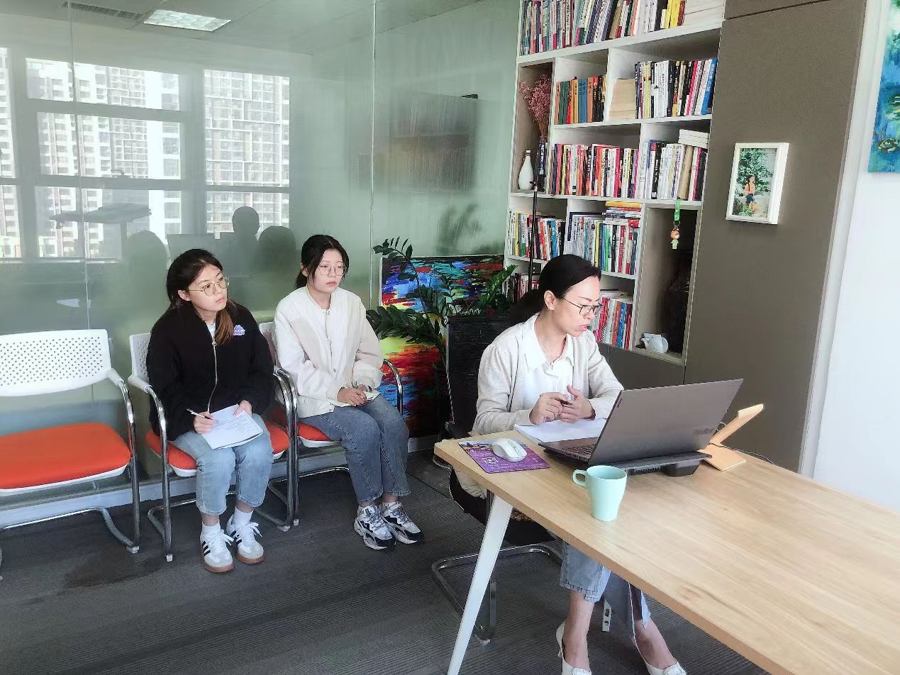 学生们进入企业进行实习,纪总为学生们讲解公司的业务流程,使学生们对公司的日常工作有了深刻了解。随后,企业导师刘娟华指导学生们进行简历编写,指出简历出现的问题,为学生讲解如何规范编写简历。为了直观深刻的进行面试流程学习,纪总安排学生进行面试旁听,学生从旁协助面试记录,学习面试技巧。随后,纪总对此次面试效果进行总结,告知学生如何考察应聘者综合素质,学生们认真记录要点。企业导师刘娟华安排学生编写招聘启事以及面试提纲,并对学生的工作成果加以指导纠正,保证学生理论落实实践,切实学到专业知识。