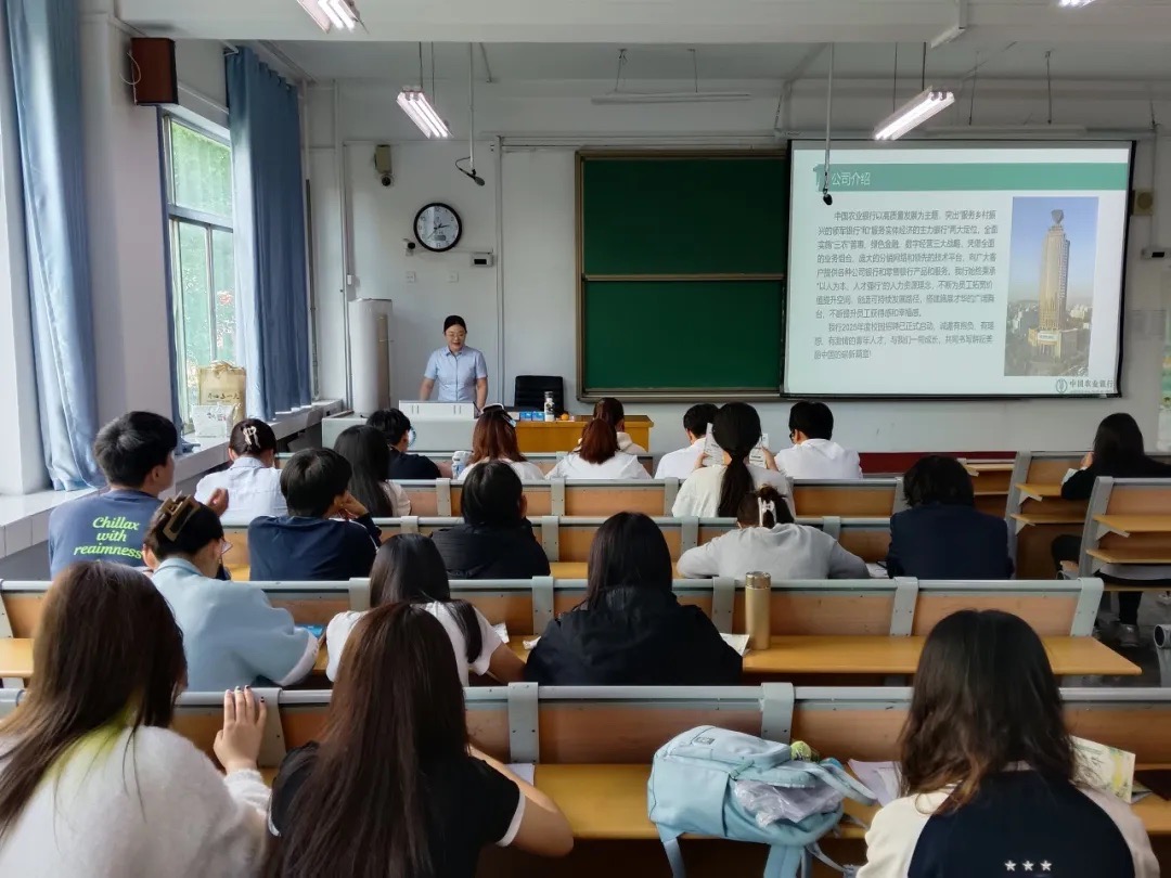 一是开展“值此青绿,追梦年华”中国农业银行(聊城分行)招聘会。学院邀请中国农业银行东昌府支行副行长路芳于东校区1#205开展中国农业银行(聊城分行)2025届校园招聘会,并组织2025届毕业生参加会议。