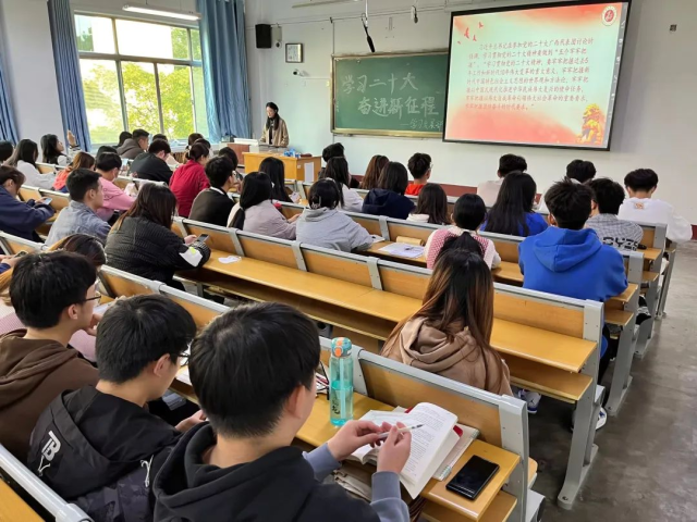 奋进新时代,争做新青年。为学习党的二十大报告精神,强化党史学习教育,加强学院学生思想政治教育,根植爱党爱国情怀,10月23日,商学院于东校区1#305举办“永远跟党走 奋进新征程”活动。