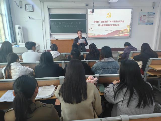 11月9日,商学院(质量学院)学生党支部召开中共预备党员转正大会,会议分别由各学生党支部书记主持,本支部全体党员参加会议。