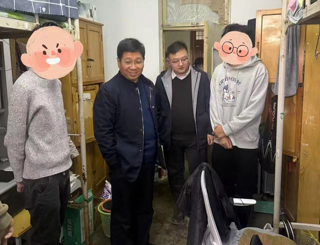 刘玉华一行与家庭经济困难学生进行了亲切细致的交流,详细倾听了解了学生因经济压力产生的学业、生活焦虑,并结合学生的主要关切,耐心禅师介绍了学校的各项奖学金政策和帮扶政策,鼓励家庭经济困难学生牢固树立自信心,积极克服暂时性的困难,努力学习、拼搏奋进,用知识改变命运。与此同时,刘玉华一行仔细检查、记录了学生宿舍的设施设备及其运行情况,有效确保了学生居住环境的安全、舒适。