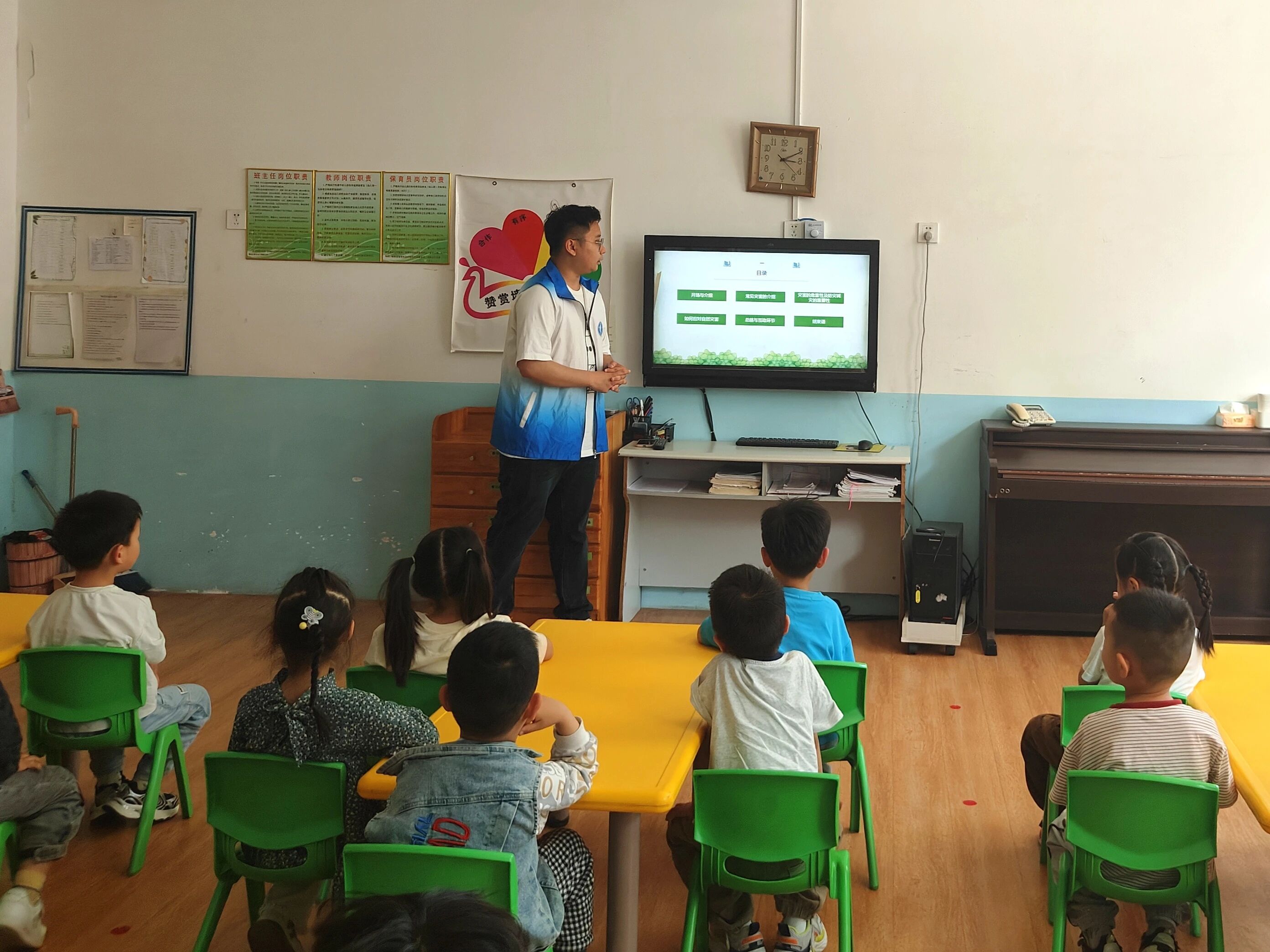 志愿者借助PPT,细致讲解地震、火灾、洪水等常见自然灾害的成因、危害及应对方法的同时,耐心告知小朋友们在地震来临时,应迅速躲在桌子等坚固家具下,用坐垫、枕头等保护好头部等防护措施。为了让小朋友们更好地理解和掌握防护知识,志愿者设计了“减灾卫士”小游戏环节。游戏中,小朋友分别扮演不同的角色,模拟火灾发生时的场景——有的小朋友负责拨打“119”报警电话,有的小朋友用湿毛巾捂住口鼻弯腰逃生,还有的小朋友帮助老师疏散其他小伙伴。游戏过程中,志愿者全称参与指导,及时纠正不正确行为,小朋友们在欢乐的游戏氛围中,轻松地记住了火灾逃生的要点。
