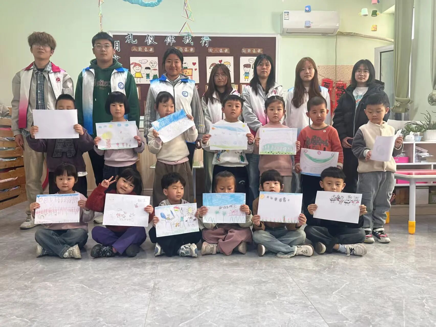 4月10日,商学院(质量学院)于翰林苑幼儿园开展“绘梦春天里 童心绽彩时”社会实践活动,2023级12班孙小涵、顾绍凡等8名志愿者参加活动。