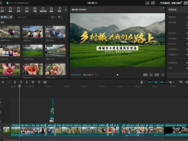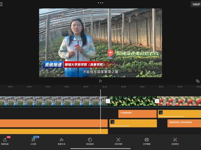 素材收集完成后,实践团队迅速投入到视频制作阶段。队员们分工协作,先对海量素材进行筛选、分类与粗剪,提炼核心亮点内容,再围绕脚本逻辑,搭配轻快动感的背景音乐,插入生动形象的字幕解说与趣味特效,让视频节奏张弛有度。为突出草莓的诱人质感,队员们反复调试画面色调,强化色彩饱和度与细节清晰度,让每一颗草莓的鲜甜感跃然屏上。剪辑过程中,团队多次组织内部评审,邀请指导老师提出修改意见,从镜头切换的流畅度、文案表达的精准度到引流信息的自然度,逐一推敲打磨,最终形成兼具网感与质感的系列宣传视频。