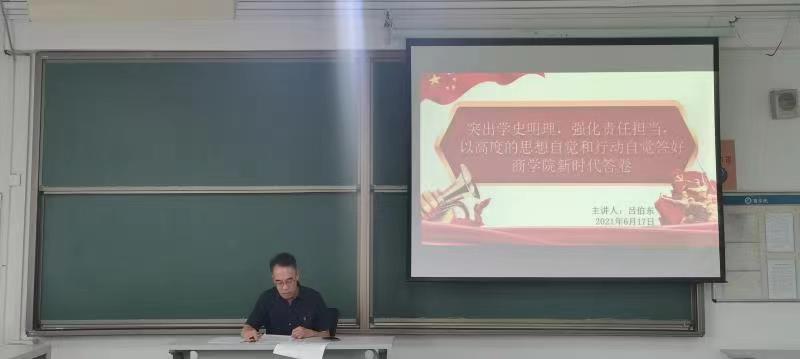 6月17日下午,商学院党总支书记吕伯东为学院全体教工党员上党史教育课。