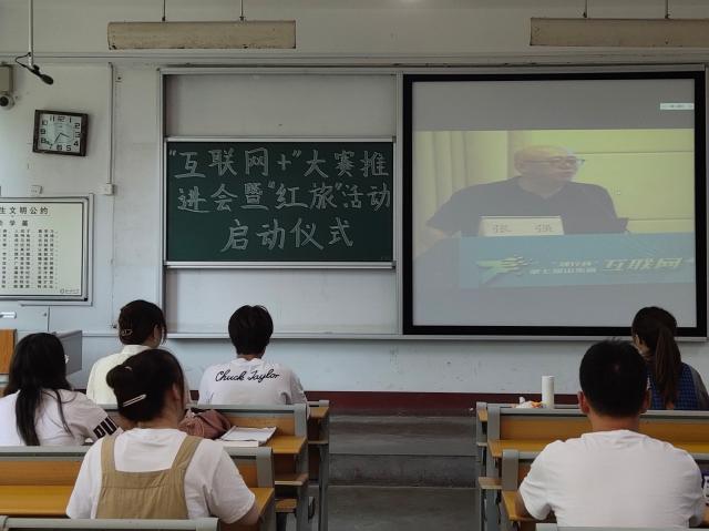 为贯彻落实教育部关于第七届中国国际“互联网+”大学生创新创业大赛的相关要求,进行赛事解读,启动太阳成城集团商学院“青年红色筑梦之旅”活动,6月18日,商学院于1#109组织本学院“互联网+”大赛项目指导教师及参赛学生在线观看第七届山东省“互联网+”大学生创新创业大赛推进会暨“青年红色筑梦之旅”活动启动仪式的直播。