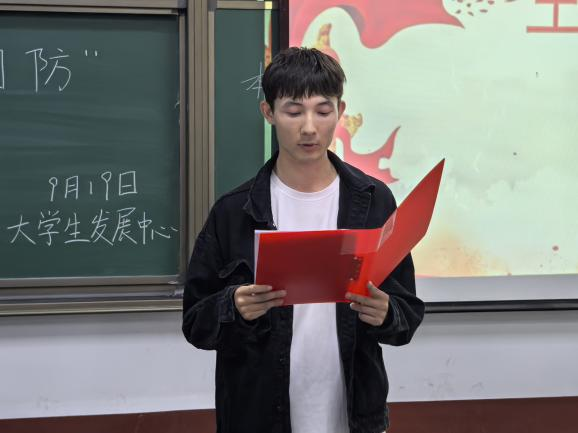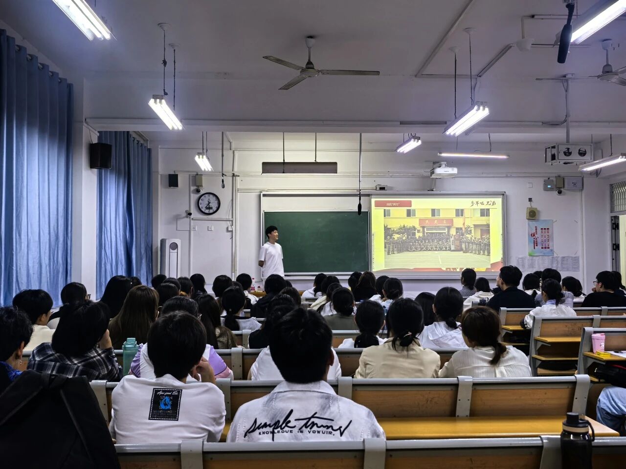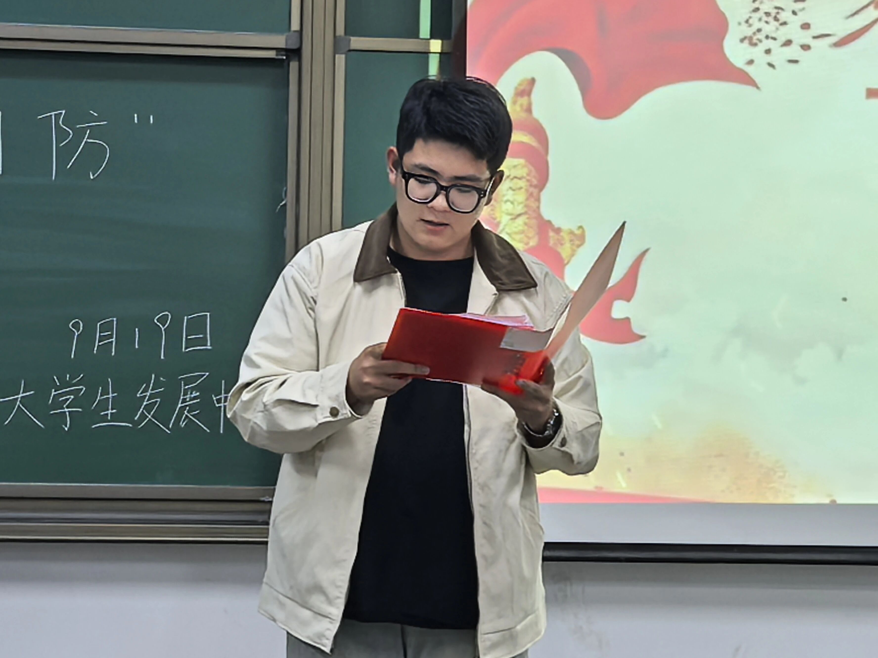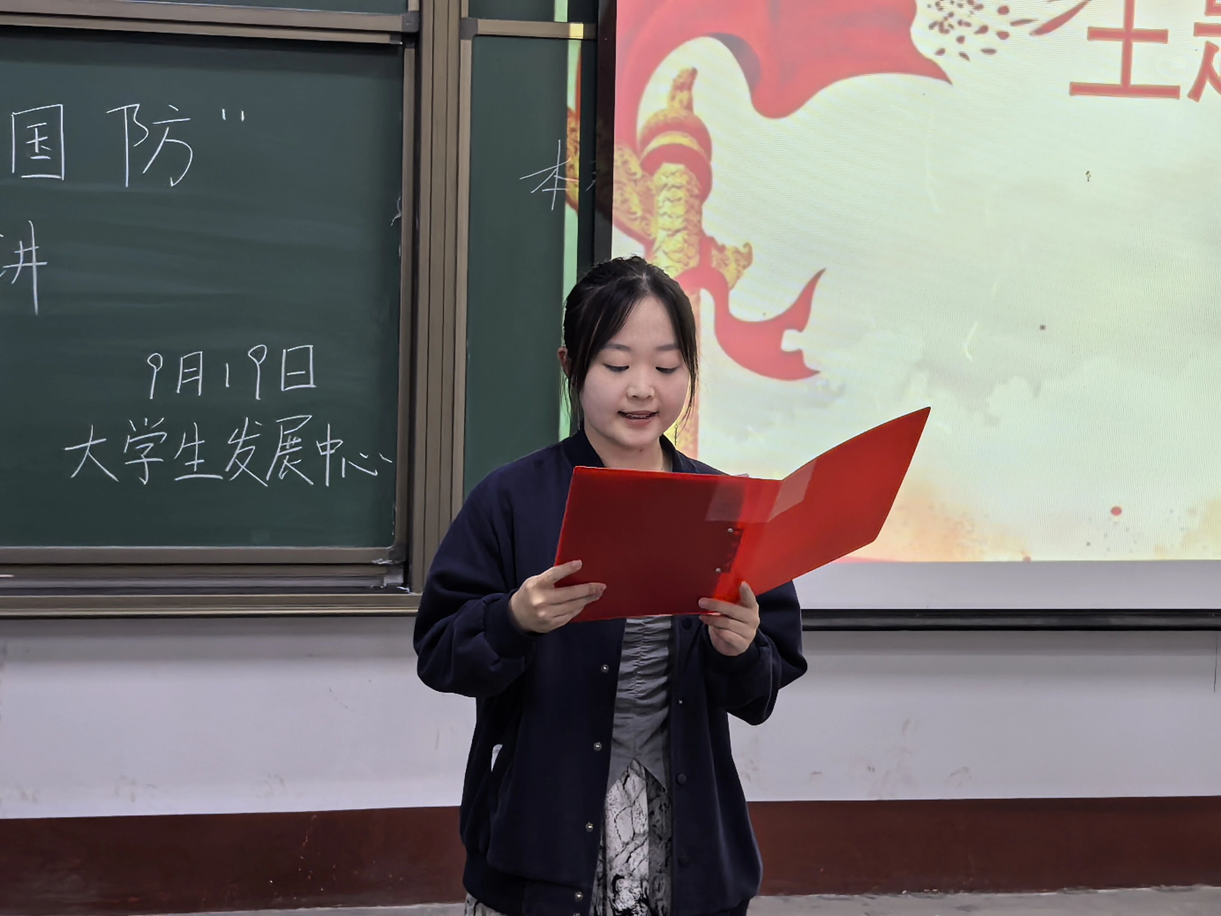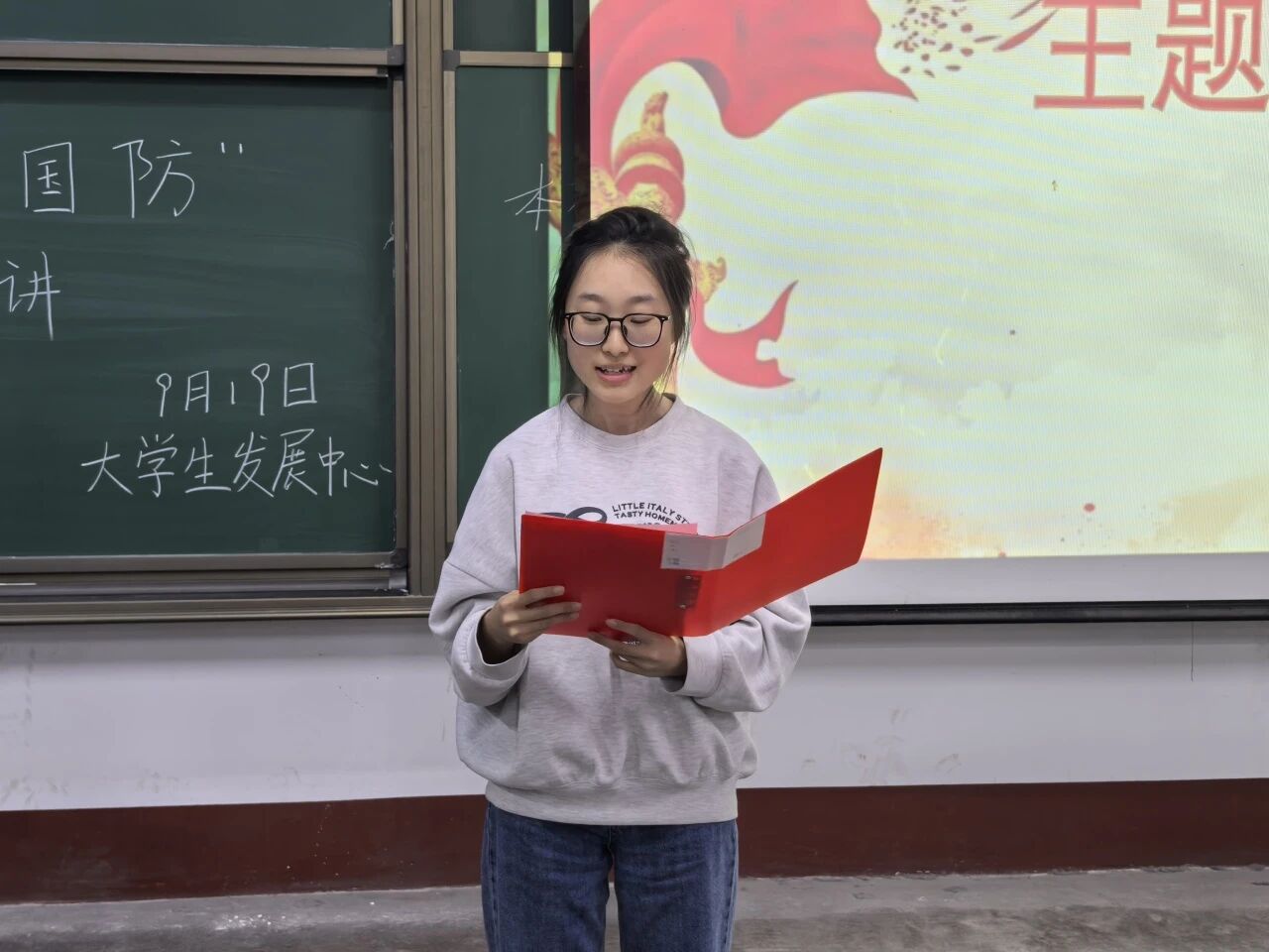 9月20日,学院组织新生观看“爱我国防”主题演讲会,跟随演讲者一同回顾革命岁月里的国防坚守,见证新时代国防科技的迅猛发展。当讲到边防战士不畏艰险、坚守戍边的事迹时,不少学生眼中泛起泪光;谈及青年学子投身国防建设的鲜活案例时,现场响起阵阵共鸣掌声。观后交流环节,同学们踊跃发言,纷纷表示要将爱国情转化为实际行动,以青春之力守护家国。