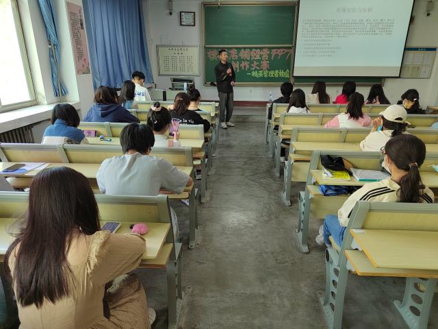 青春展风采,创新赢未来。为了让同学们更深入地了解店铺经营的具体过程,增加同学对未来创业的具体知识储备,提高同学创新创业能力。精英管理者协会于4月23日在东校区1#301教室举办了“模拟店铺经营”PPT创作大赛活动。本次PPT创作大赛的评委由邢戈老师担任,商学院部分学生参加了本次活动。