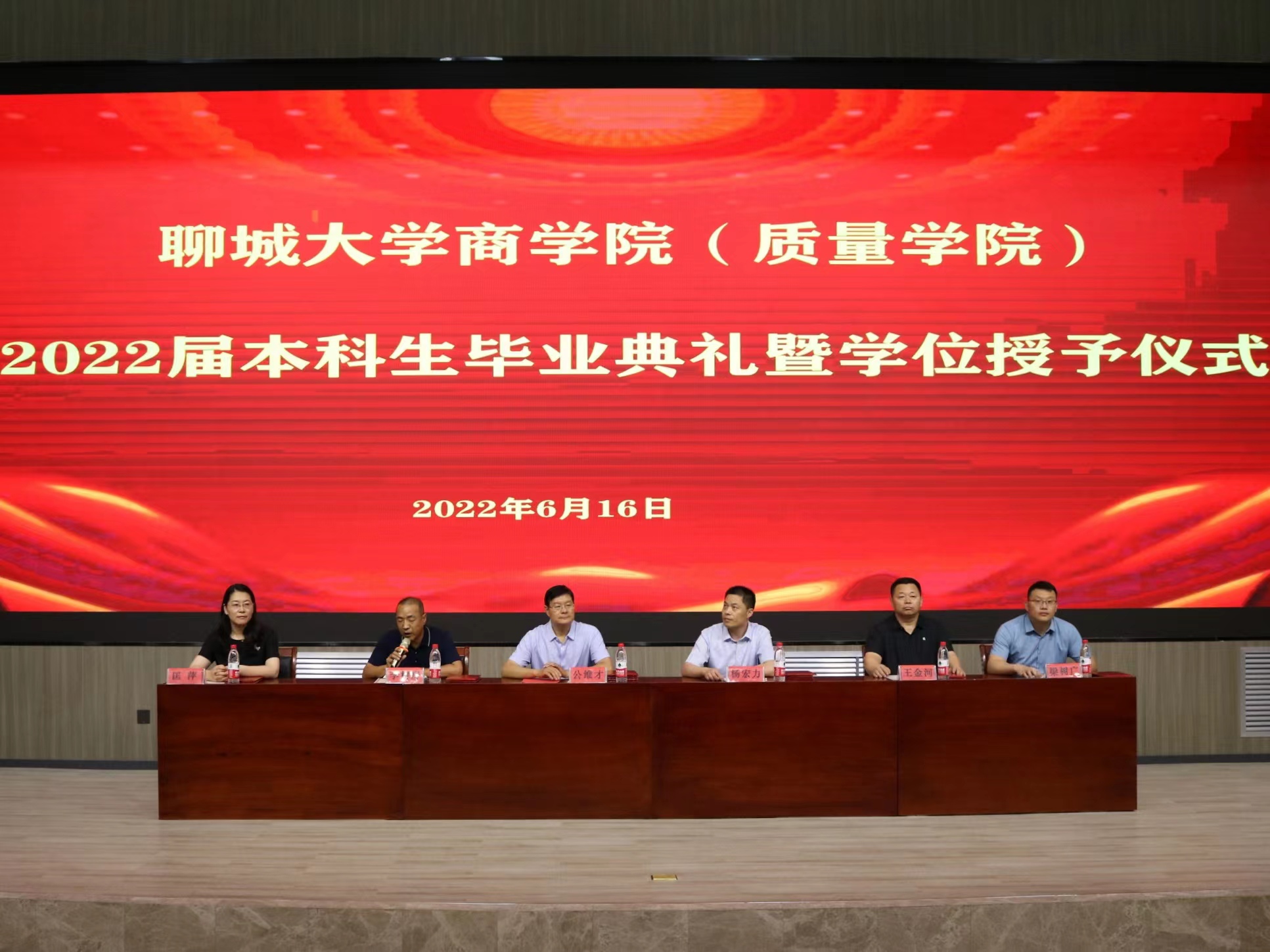 回顾四载春华秋实,喝彩盛夏硕果累累。为了给2022届毕业生的大学生活画上一个圆满的句号,锁住美好的回忆,共叙师生情意,憧憬美好未来,6月16日,商学院(质量学院)于实训楼举办了2022届本科生毕业典礼。商学院党委书记公维才,院长杨宏力,党委副书记李树房,副院长王金河、梁树广、匡萍,全体教师以及部分2022届本科毕业生参加了商学院(质量学院)2022届本科生毕业典礼,李树房担任主持。