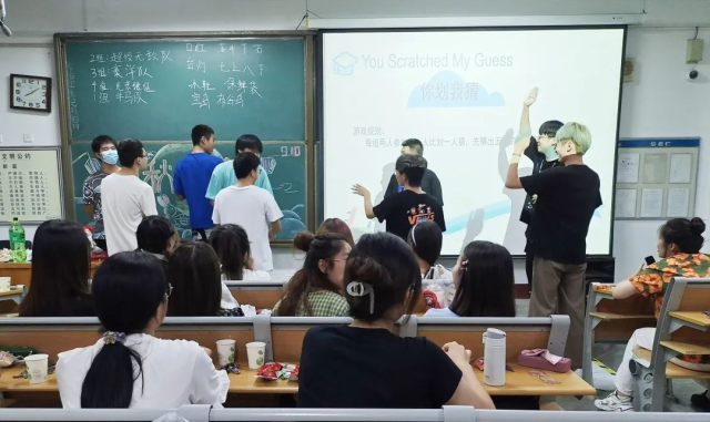 9月10日,我院于东校区1号教学楼举办中秋晚会。晚会现场,灯光璀璨,活动开始前,主持人先邀请全场观众进行热身小游戏——你画我猜,随着游戏的进行,同学们的热情被彻底点燃,现场氛围活跃。