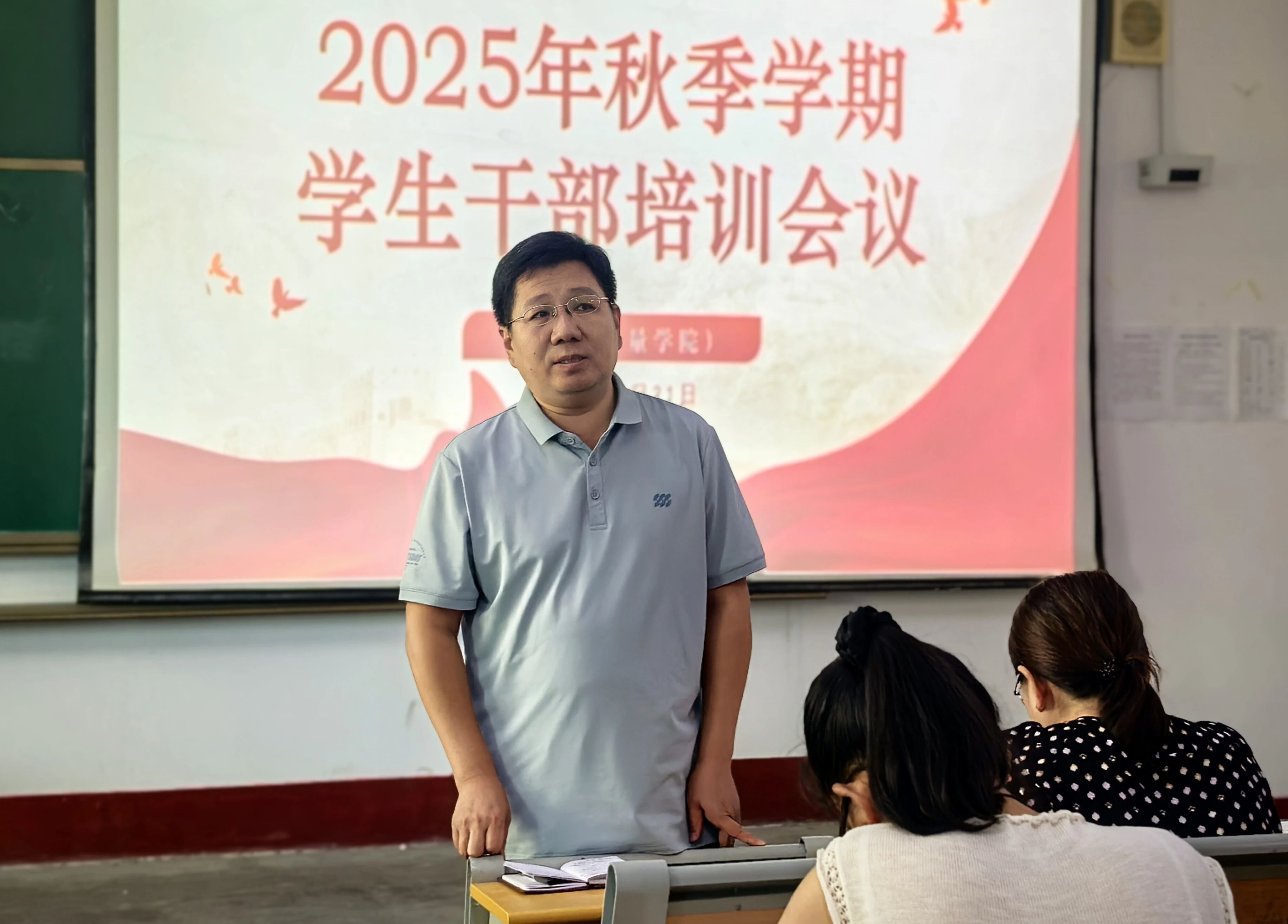 为进一步总结社会实践经验,加强学生干部队伍建设,推动新学期各项工作高质量开展,8月31日,商学院(质量学院)于东校区1#205教室召开2025年秋季学期学生干部培训会议。学院团委书记刘玉华,辅导员焦艳芳、韩亭亭、施安琪、王高平、刘聪睿及学院全体学生干部参会。