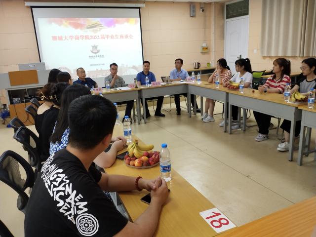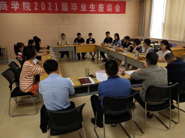 6月16日下午,商学院召开2021届毕业生座谈会,学院党总支书记吕伯东、主持行政工作的副院长杨宏力、副书记李树房以及部分毕业生代表参加座谈会。