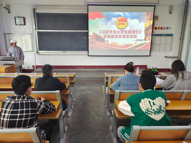 《习近平与大学生朋友们》通过记录25篇访谈实录,讲述了1983年12月至2019年7月间,习近平同志在河北正定、福建、浙江、上海和到中央工作以来,与大学生们交流、交心、交友的故事,真实记录了他对青年特别是大学生始终如一的关注关心关爱,是系统学习把握习近平总书记关于青年工作的重要思想不可或缺的素材。在活动现场,同学们集体学习了《习近平与大学生朋友们》一书的相关内容和知识,并依次上台,分享自己读完此书后的见解与思想感悟,与场下同学积极进行互动交流,相互讨论故事中所传达的思想与情感。最后,同学们一致表示《习近平与大学生朋友们》不仅是学习习近平新时代中国特色社会主义思想的生动教材,更是引领我们牢记殷切期望、沿着党指引的方向健康成长的指路明灯,定会认真学习领会,贡献青春力量。
