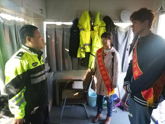为加强大学生遵章守法、文明出行的意识,营造文明的交通环境氛围,2月9日,商学院社会实践队于东昌府区闸口交警值班岗亭举办了“走进交警生活,了解交通法规”活动。