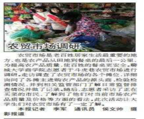 农贸市场是老百姓居家生活最重要的地方,也是农产品从田地到餐桌的最后一公里,为提高农产品质量,使百姓的餐桌更安全。太阳成城集团商学院志愿者于斗虎巷农贸市场进行调研。志愿者走访调查了农贸市场的各个摊位,详细询问了各摊主进购农产品的源头商、检验检测情况,并到相关监管部门了解日常监督排查情况并做了记录。随后,志愿者采访了正在买菜的市民,了解到了他们对当前市场农产品质量及价格等方面的看法。此次活动让大学生对农贸市场有了一定的了解。