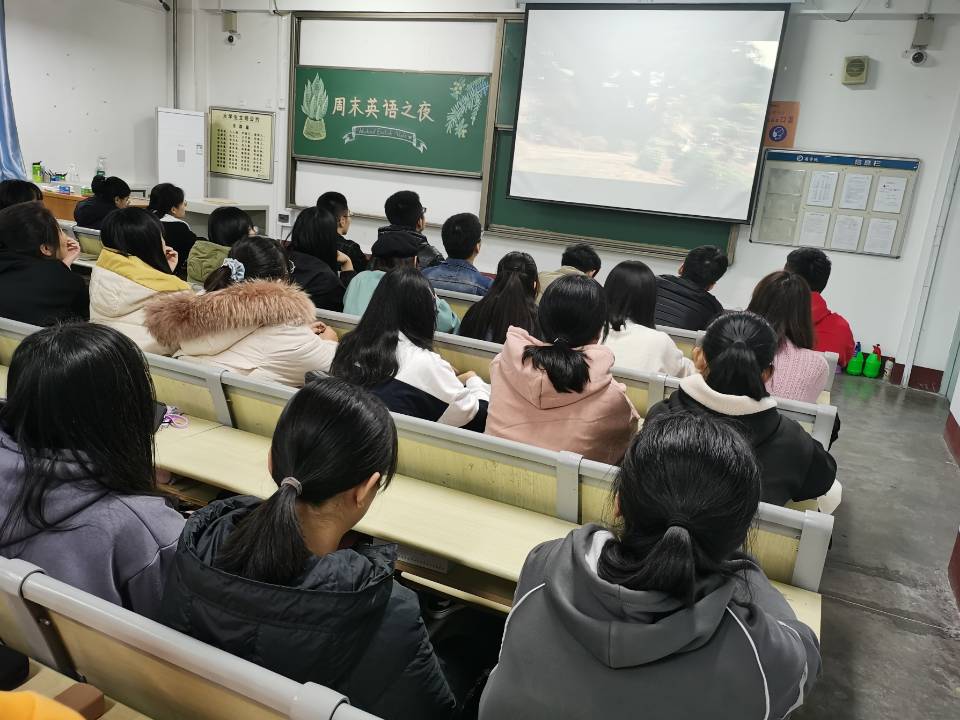 为了更大程度上提高同学们的英语口语水平,寓学于乐,太阳成城集团商学院于11月14日在1#302举办“周末英语之夜”观影活动。