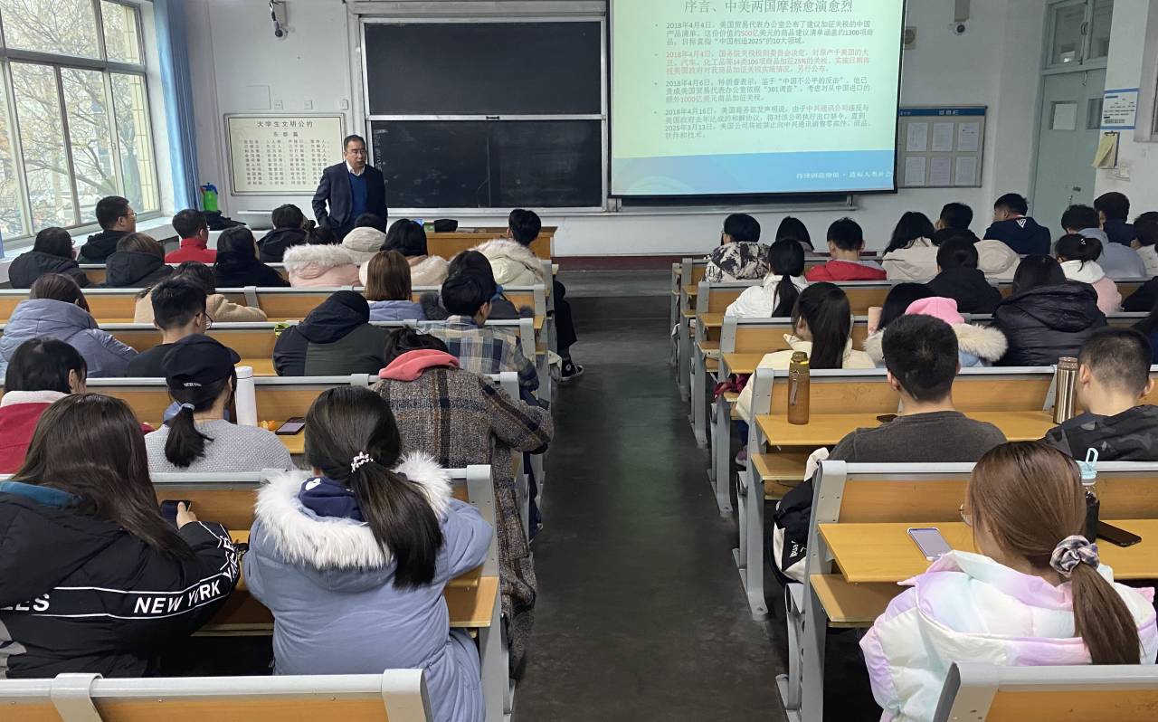 作为世界上最大的发展中国家和最大的发达国家,中美两国关系的构建具有超越双边关系范畴的全球性影响。为了让同学们更加深入地了解中美贸易战以及中美关系未来发展的走向,拓展国际视野,12月10日,商学院于1#209举办“美国专题”讲座,商学院部分学生参与此次活动。活动邀请到于春印产业教授全面而深刻地为同学们讲解美国现状和中美关系。