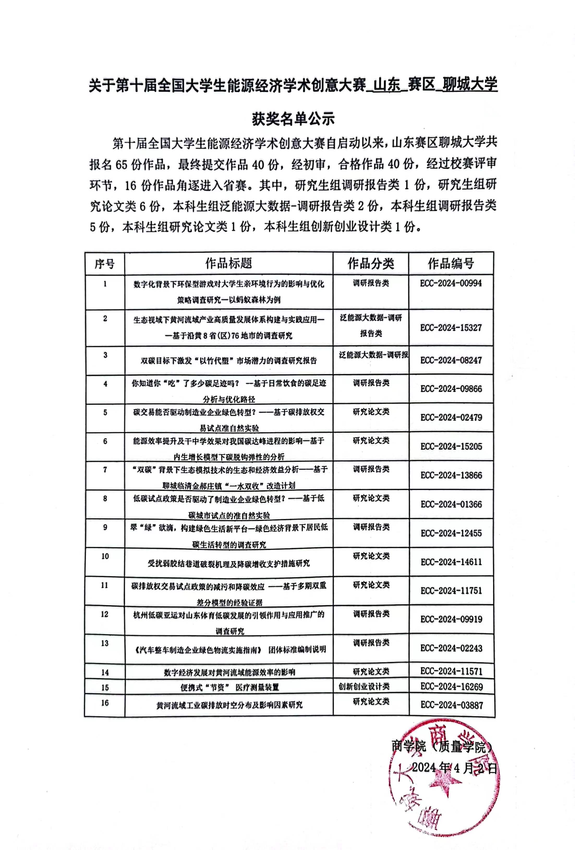 关于第十届全国大学生能源经济学术创意大赛山东赛区 太阳成城集团 获奖名单公示