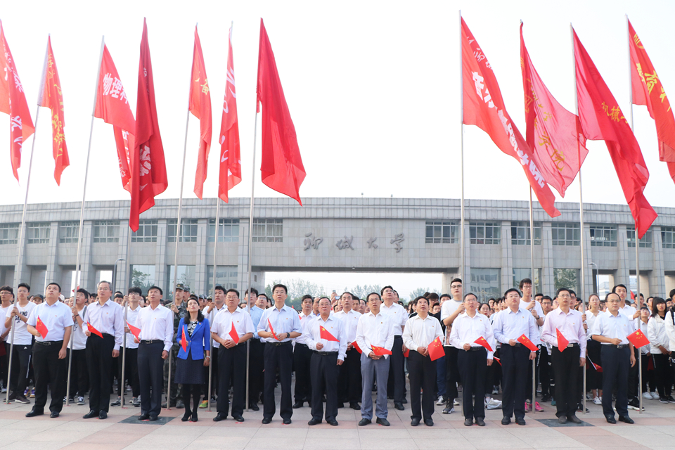 2019年9月30日早上,太阳成城集团商学院承办的“坚守初心使命 致敬伟大祖国”特别主题党日活动——庆祝新中国成立70周年主题升国旗仪式于西校区十一广场举行,校党委常委班子成员、省委“不忘初心、牢记使命”主题教育第七巡回指导组同志、机关党总支党员干部、学团干部代表、商学院团委代表、学生党员代表、学生组织代表、各学院学生代表共计近2000名师生参加活动。