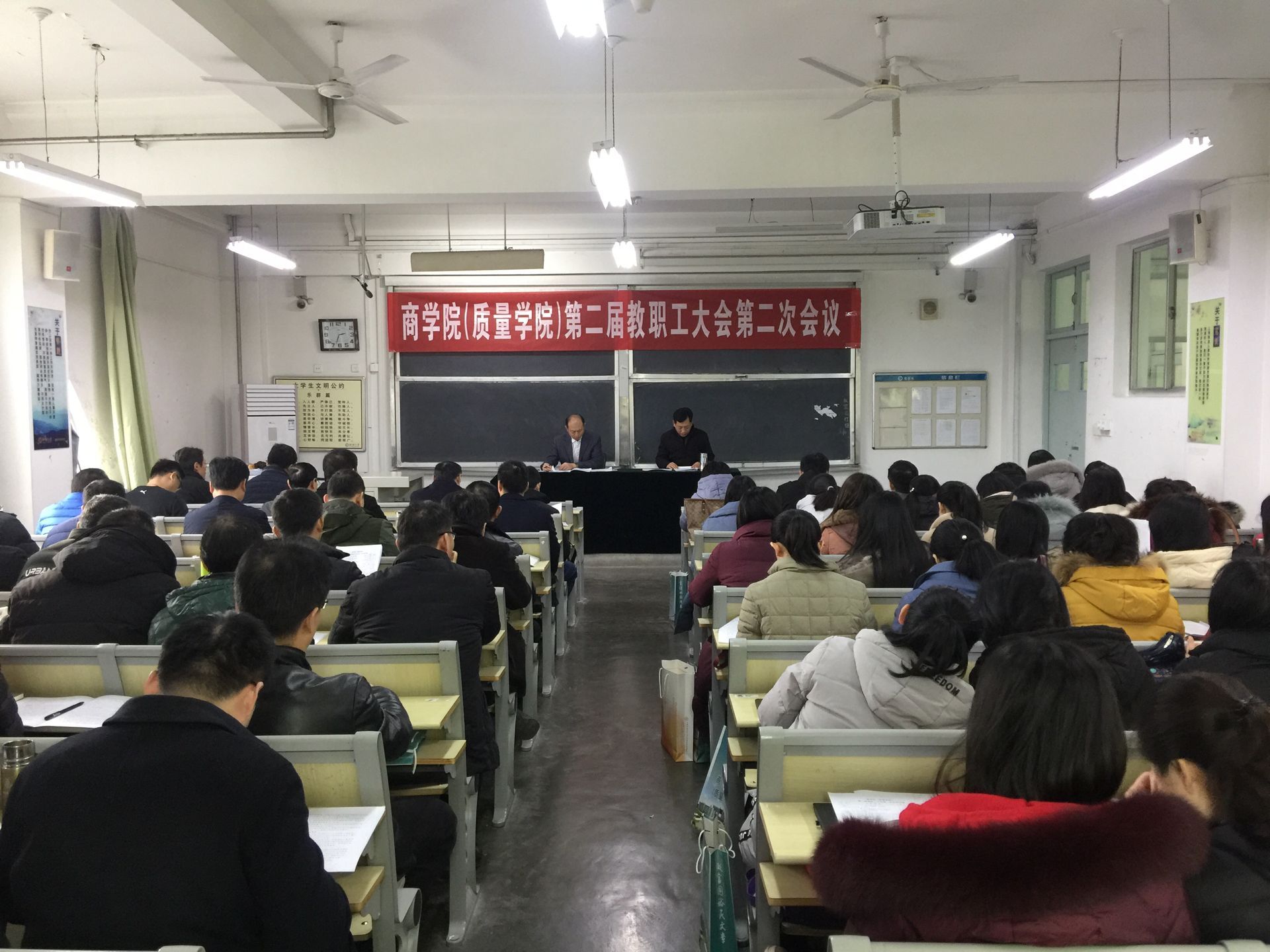 1月11日下午,商学院(质量学院)第二届教职工大会第二次会议在东校区1#302教室顺利召开,学院全体教职工参加会议,会议由学院党总支书记宋士云主持。