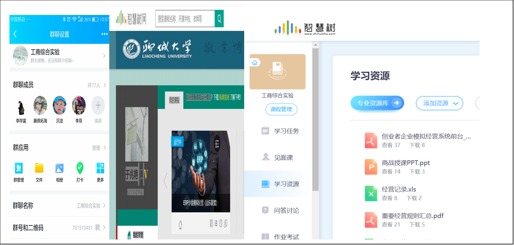 图为于兆艳老师创建QQ、观看智慧树课程、上传学习资源
