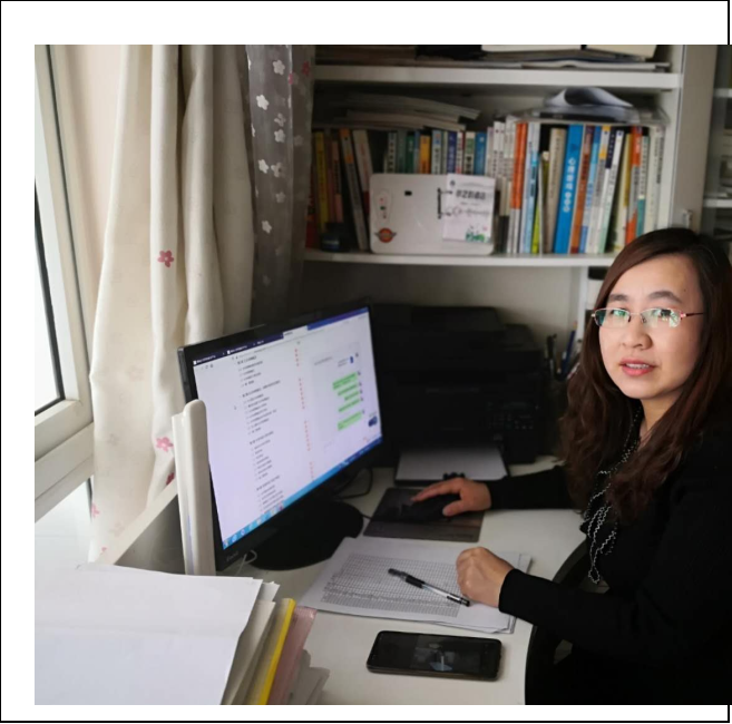 线上教学也需要老师积极备课,甚至比线下教学需要更多技能,在上课前要熟悉各种教学平台如何上传课件,如何在线直播,如何查看学生的在线学习情况等等各种技术。下图为焦艳芳老师和于兆艳老师在备课中。