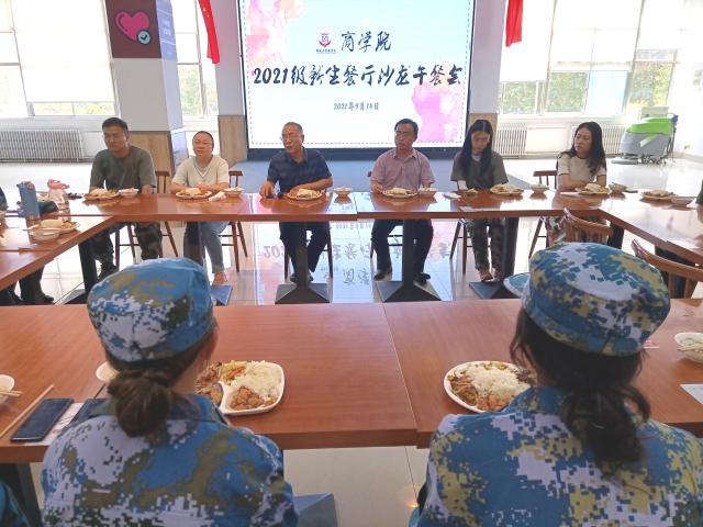 为了解新生同学在学习、生活上遇到的问题,构建师生间沟通的桥梁,引导新生对未来的学习生活进行科学的规划,9月14日,商学院于翰苑餐厅开展“相约金秋迎新群 激扬青春展未来”2021级新生餐厅沙龙午餐会,商学院党总支副书记李树房、学生党支部书记、团委书记岳增刚、各辅导员及部分21级学生代表参加了活动。