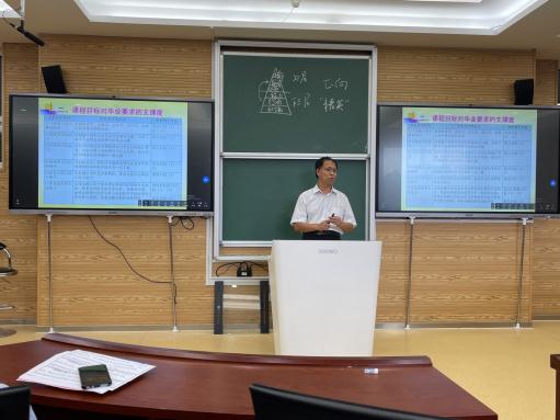 曾宪禄副处长对此次活动进行了总结。首先,他对学院课程改革具体落地实施提出了建设性的意见,与专业教师就后续优化课程改革方案进行了探讨。其次,他分别从课程目标、课程内容、教学组织、线上线下教学有机结合、考核方法等方面提出了改革建议,希望专业教师在后续课程改革和建设中突出专业特色,对标专业认证的要求。最后,他提出在课程改革和“说课程”活动继续推进的过程中,有机结合学校《关于举办青教赛、教学创新大赛及课程思政比赛参赛选手选拔活动的通知》,选出各系优秀教学人才,搭建学院教学梯队,为教学比赛做好充分准备,并真正将课程改革做实,提升人才培养质量。