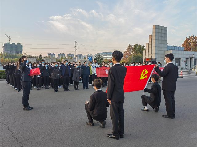 伴着晨风,迎着朝阳。国旗护卫队迈着铿锵有力的步伐,护送国旗入场。“升国旗,奏唱国歌,请全体师生行注目礼。”随着主持人音落,《义勇军进行曲》响彻全场,五星红旗冉冉升起,全体师生肃立,面向国旗行注目礼。接着,由学生代表进行“青春心向党 百年正启航”主题演讲,强调新时代青年应当厚植家国情怀,做坚定勇毅的“信仰者”;新时代青年,应当锤炼品德修为,做矢志前行的“追梦人”;新时代青年,应当勤学立志务实,做砥砺奋进的“实干家”。演讲感染着在场的每一位青年。最后,跟随主持人的介绍,大家一同回忆了历史上的今天,在场全体党员重温入党誓词,大家纷纷表示通过重温入党誓词,再一次体会到了作为一名共产党员的责任感与使命感,在今后的学习和工作中一定以昂扬的士气、进取的心态践行入党誓词。