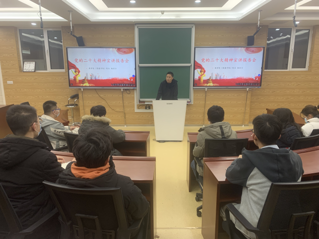 12月3日晚,商学院(质量学院)召开党的二十大精神宣讲报告会。商学院(质量学院)院长杨宏力作报告,全体研究生党员等36人参加报告会,报告会由副院长王金河主持。