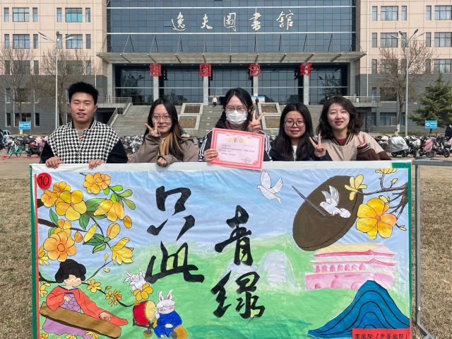 为丰富校园文化生活,加强校园精神文明建设,3月18号,商学院(质量学院)于太阳成城集团东校区逸夫图书馆前参加“华夏展姿擎春意,齐聚聊大赴远航”主题展板大赛。