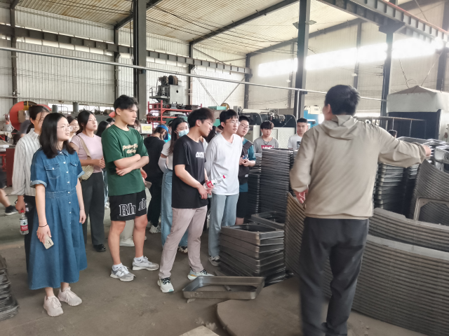师生一行人首先听取了公司负责人公厂长对企业经营范围、车间概况的介绍。随后,在公厂长的带领下依次参观了激光加工、冲压、焊接、机加工、喷塑等车间以及模具仓库和产品仓库。最后,公厂长对该公司的经营流程、质量控制等进行了介绍,耐心回答了学生们关于标准化、质量保证手段、喷塑过程的问题。令人敬佩的是,公厂长不仅是一位既懂技术又懂管理的模具设计与制造专家,而且非常耐心地回答学生们提出的各种问题,并对学生们今后考研考公提出了殷切期望。
