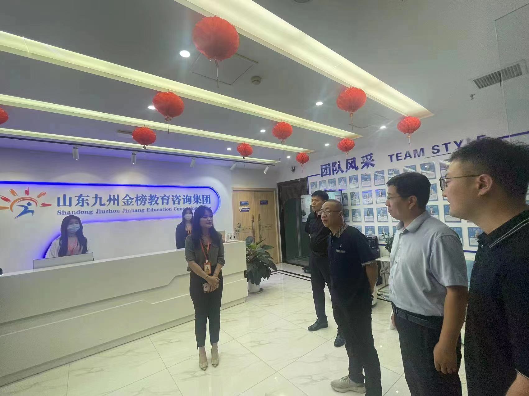 为进一步深化产教融合,探索多元化的岗位实习资源,更好地为企业和社会培养高素质、高技能的应用型人才,推进促就业、稳就业工作,7月3日商学院(质量学院)党委副书记李树房、团委书记刘玉华、辅导员高鹏、韩亭亭赴山东九州金榜教育咨询集团与总经理冯海宁开展访企拓岗交谈会。