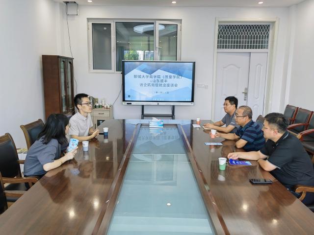 为给毕业生提供良好的就业岗位和机会,拓展视野,进一步深化校企合作,推进“访企拓岗”促就业专项行动,9月14日,商学院(质量学院)于东校区1#410与山东顺丰开展访企拓岗促就业座谈会。商学院(质量学院)党委副书记李树房、团委书记刘玉华、辅导员高鹏与山东顺丰人才生态负责人李晓明、顺风济南大区招聘HR魏浩参加此次座谈会。