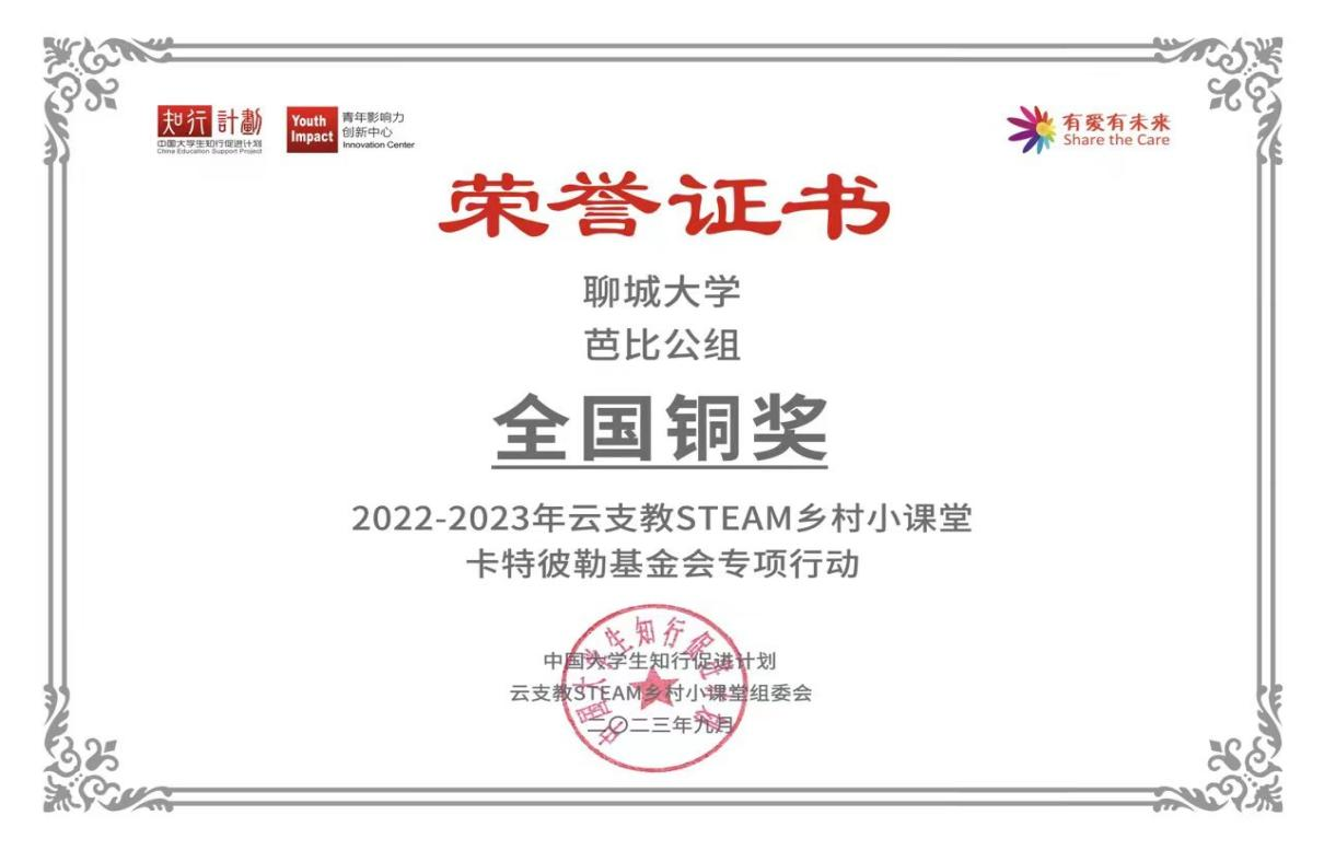 喜报|铜奖!太阳成城集团“芭比公组”支教团队在“知行计划”云支教STEAM乡村小课堂项目中荣创佳绩