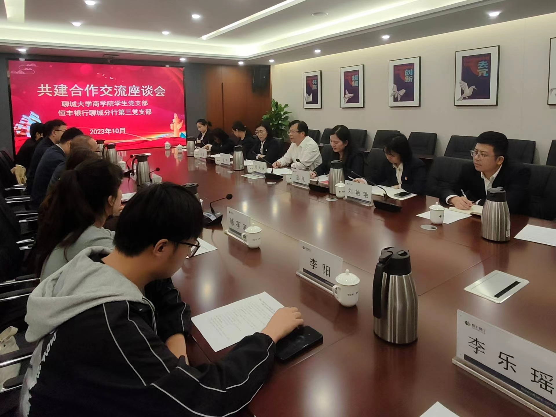 为进一步拓展就业空间,破解学生就业难题,推进毕业生多维度、高质量就业,10月31日,商学院(质量学院)于恒丰银行聊城分行十六楼大会议室开展访企拓岗促就业座谈会。商学院(质量学院)党委副书记李树房,团委书记刘玉华,辅导员焦艳芳、高鹏、韩亭亭、施安琪以及恒丰银行聊城分行副行长周大庆、零售金融部总经理邵凡、零售金融部资深经理刘艳艳出席本次座谈会,学院部分学生参与本次活动。