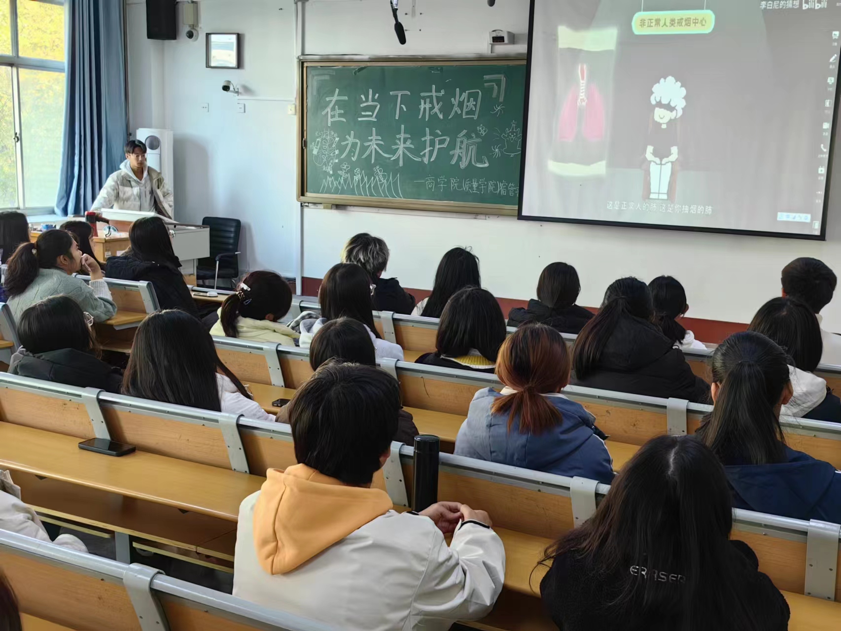 为呼吁大学生“烟民”戒烟、禁烟,让大家能够进一步了解吸烟的危害,进一步促进大学生“烟民”戒烟,11月18日,商学院(质量学院)于东校区1#305举办“在当下戒烟,为未来护航”戒烟知识宣讲活动,由学院部分学生和部门主要负责人参加。