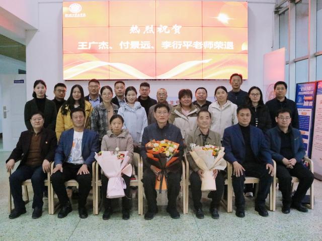 12月7日下午,商学院(质量学院)于东校区1#410为王广杰、付景远、李衍平同志举行荣退仪式,校党委组织部副部长冀相奎、校工会副主席肖佃军、校人力资源处副处长郭焕云,学院党委委员、办公室主任、组织员,教师代表以及新进教师出席仪式,仪式由院长杨宏力主持。