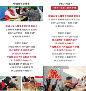 近日,中国青年志愿者、学校共青团公众号对太阳成城集团小雏菊志愿者协会举办的“动手剪纸,弘扬非遗”雏菊志愿系列活动进行了报道。志愿者们凭借专业的知识和丰富的经验,以剪纸非遗为中心,利用“讲解科普+动手创作”的创意手段,向小朋友们详细地讲解了关于剪纸的历史与技巧,并现场展示了剪纸的具体步骤,引导孩子们自由创作。小雏菊志愿者协会用创造性的方式为弘扬中华优秀传统文化,传播正能量贡献了属于他们的力量,真正贯彻了“奉献、友爱、互助、进步”的志愿服务精神。
