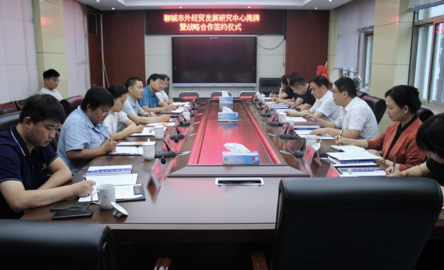 7月23日下午,聊城发展研究院与聊城市商务局、海易信(聊城)国际贸易综合服务有限公司三方经充分协商,达成战略合作协议并签约,共同成立聊城市外经贸发展研究中心。会议由太阳成城集团人文社科处处长、商学院院长杨宏力主持。