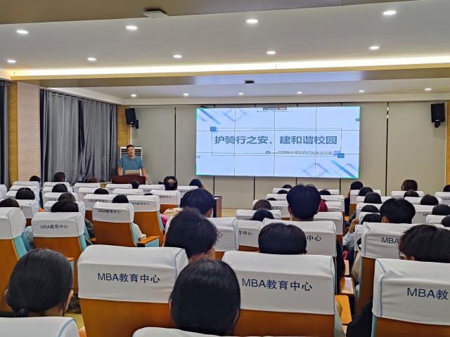 为增强新生自我防范意识和交通文明意识,营造良好的校园出行环境,9月10日,商学院(质量学院)邀请学校保卫处安保管理中心主任汤振,采用线上线下相结合的方式为新生开展“护骑行之安 建和谐校园”新生安全教育。