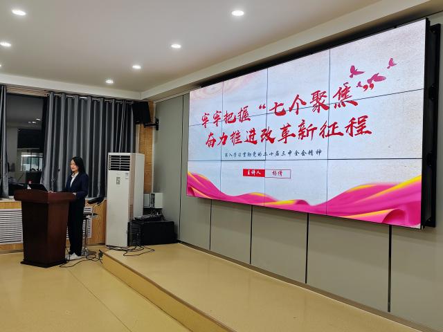 本次宣讲设置主会场和分会场,主会场现场宣讲,学生也可以通过分会场实时转播进行学习。会上,杨倩以党的二十届三中全会召开的重大意义和主要内容为切入点,深入浅出地剖析了“七个聚焦”的丰富内涵及其对推动改革新征程的关键作用,并引领商院学子透过“七个聚焦”准确把握全面深化改革的目标任务,领会“七个聚焦”对进一步全面深化改革的重大意义,鼓励学生围绕“七个聚焦”继续把全面深化改革推向前进。她指出,新时代中国青年应当在党的领导下,将“七个聚焦”融入个人成长发展,切实把思想和行动统一到习近平总书记重要讲话精神和全会决策部署上来,锚定进一步全面深化改革的总目标,以实际行动推动全面深化改革向纵深发展,努力创造经得起历史、实践和人民检验的改革成果。