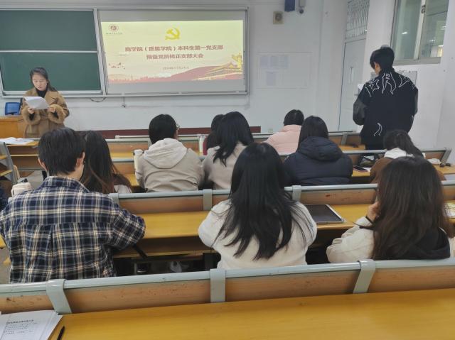 11月21日,商学院(质量学院)召开中共预备党员转正大会,会议分别由各党支部书记主持,本支部全体党员参加会议。
