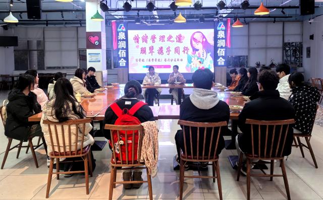 11月28日,suncitygroup太阳成集团于东校区翰苑餐厅二楼开展“情绪管理之道 朋辈携手相行”餐厅沙龙活动,学院辅导员施安琪、刘聪睿及2024级16名学生代表参加活动。