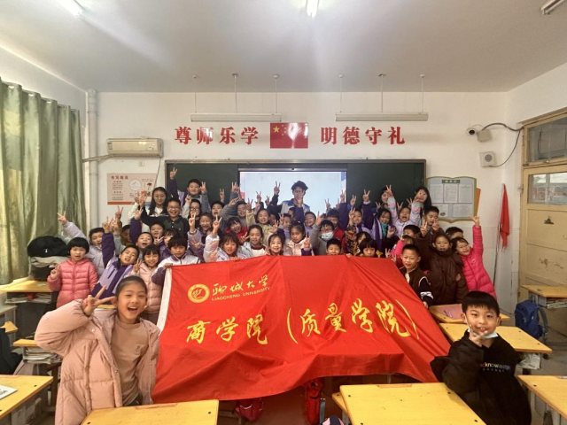 12月5日,商学院(质量学院)于东关民族小学开展“智启英华路 趣扬成长帆”社会实践活动,学院2023级11班志愿者代表周于涵、朱政杭、栾雅涵、苗雨彤、李若彤参加活动。