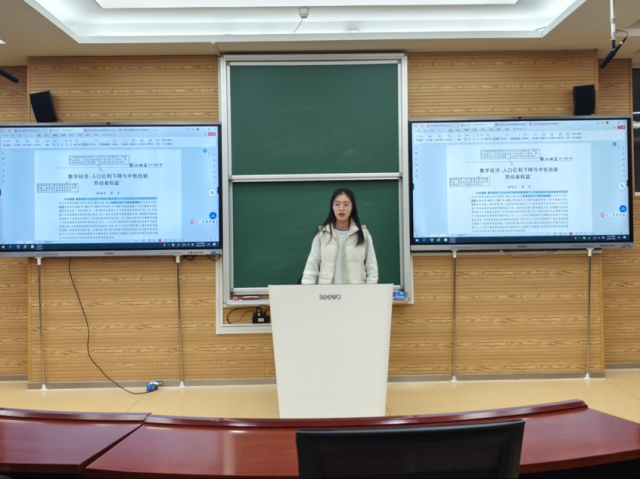 12月8日,由商学院(质量学院)研究生会主办、学术科研部承办的研究生学术沙龙第15期在学院708室举行,2023级应用经济学研究生吴轲、徐佳祺、崔文一围绕“数字经济赋能”作专题论文分享,学术科研部工作人员王文燕担任主持人,学院2023级、2024级全体应用经济学研究生参会。
