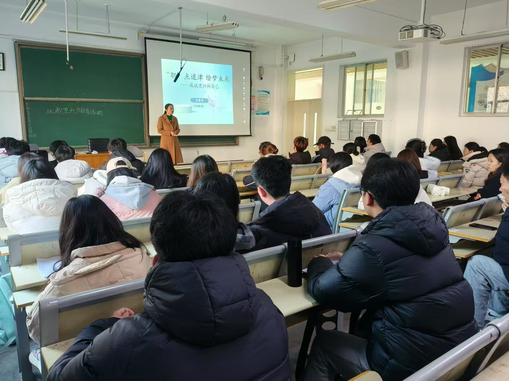 12月27日,商学院(质量学院)于东校区1#301举办“职场领航”巡回宣讲活动,邀请药学院辅导员王秀平作《职点迷津,绘梦未来——成就更好的自己》主题报告,学院辅导员高鹏及2024级90名学生代表参加活动。